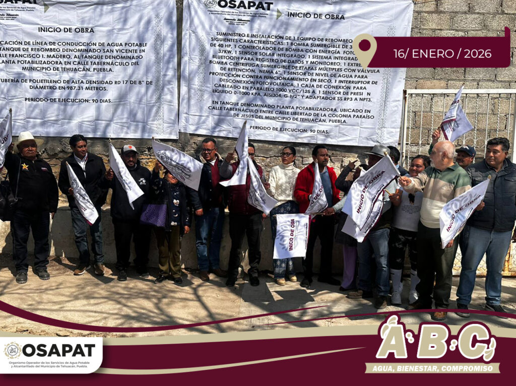 El OOSAPAT dio el banderazo de inicio a importantes obras de infraestructura hidráulica que fortalecerán el abastecimiento de agua potable en el municipio de Tehuacán.