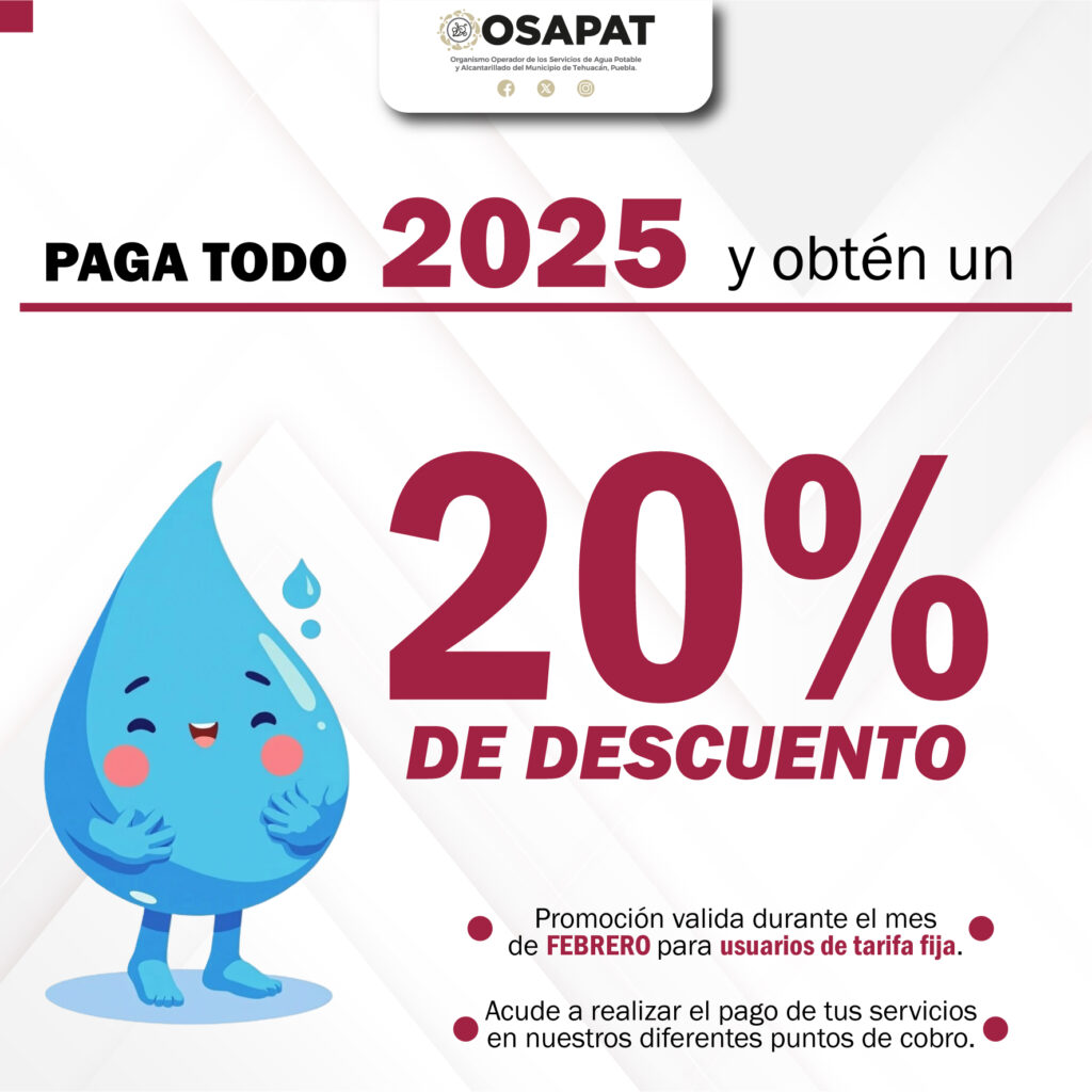 El OOSAPAT invita a obtener un 20% de descuento en este mesde febrero a los usuarios de cuota fija. Aprovecha […]