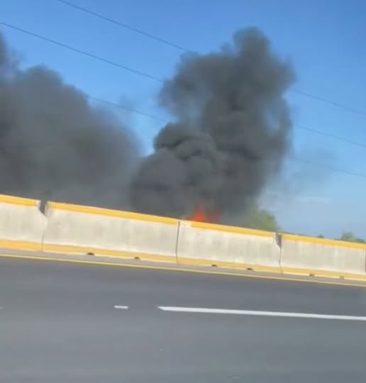 Puebla.- Una camioneta terminó consumida por el fuego la tarde de este martes frente al Arco de Seguridad de Huejotzingo,