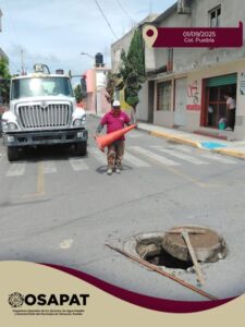 OOSAPAT realizó labores de desazolve en la Col. Puebla, con el propósito de mejorar el flujo del sistema de alcantarillado y prevenir obstrucciones que puedan generar encharcamientos o afectaciones a los vecinos.