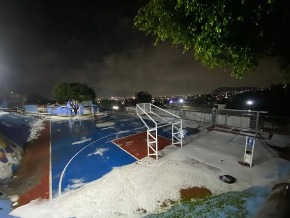La colonia San Carlos, ubicada junto a la Autopista México-Pachuca, fue una de las zonas más afectadas, donde el granizo cubrió calles y generó dificultades en la circulación vehicular.