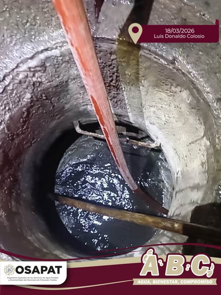 Tehuacán, Puebla.– Con el objetivo de mantener en óptimas condiciones la red de alcantarillado y prevenir taponamientos o desbordamientos, el Organismo Operador de los Servicios de Agua Potable y Alcantarillado de Tehuacán (OOSAPAT) llevó a cabo trabajos de desazolve en la colonia Luis Donaldo Colosio.