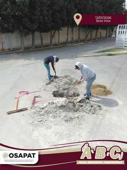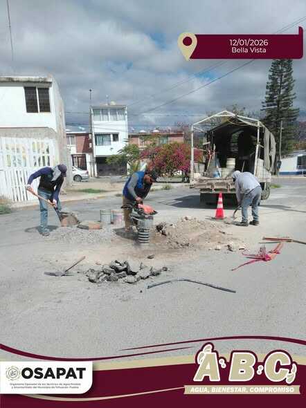 El Organismo Operador del Servicio de Agua Potable y Alcantarillado de Tehuacán (OOSAPAT) realizó trabajos de reposición de concreto en el fraccionamiento Bella Vista, luego de concluir las labores necesarias en la línea de agua potable de la zona.