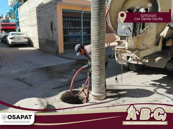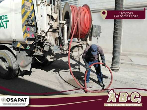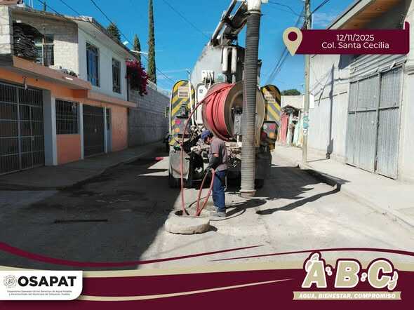 El Organismo Operador del Servicio de Agua Potable y Alcantarillado de Tehuacán (OOSAPAT) llevó a cabo labores de desazolve en la red de alcantarillado de la Colonia Santa Cecilia, como parte de las acciones permanentes encaminadas a mejorar el saneamiento y el funcionamiento de la infraestructura sanitaria en la ciudad.