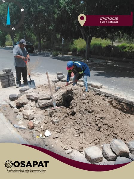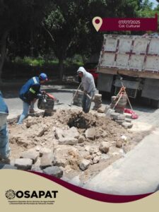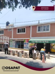 El equipo de OOSAPAT realizó trabajos de recolocación de adoquín en la Col. Cultural, como parte de los compromisos de mantenimiento y rehabilitación posterior a las intervenciones en la red hidráulica.