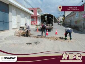 Tehuacán, Pue.- El Organismo Operador del Servicio de Agua Potable y Alcantarillado de Tehuacán (OOSAPAT) llevó a cabo trabajos de reposición de concreto en la Colonia San Francisco, una vez concluidas las labores previas en la red de servicios.