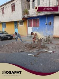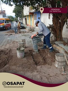 Recolocación del adoquín en la Col. Santa Cruz, con el fin de dejar en buenas condiciones la vialidad y brindar seguridad a los transeúntes y automovilistas: OOSAPAT
