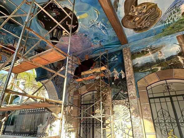 Los trabajos, autorizados por el INAH, consisten en labores de limpieza, retoque y preservación del mural ubicado en los bajos del Palacio Municipal.