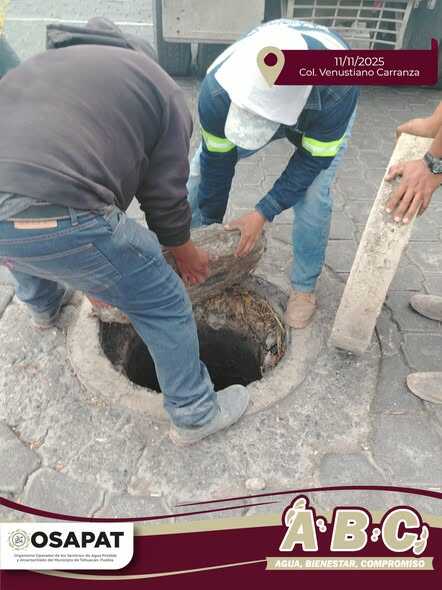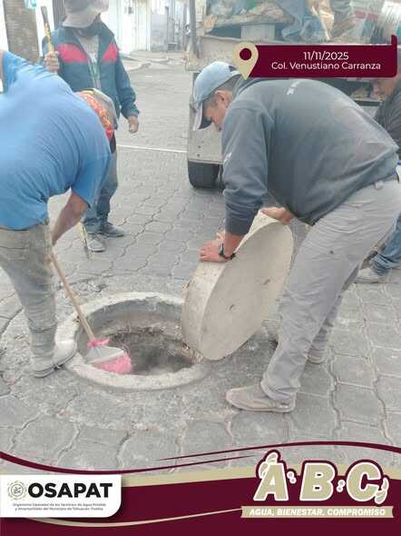 El Organismo Operador del Servicio de Agua Potable y Alcantarillado de Tehuacán (OOSAPAT) realizó el cambio de una tapa de alcantarilla en la Colonia Venustiano Carranza, como parte de los trabajos de mantenimiento preventivo y correctivo que el organismo ejecuta de manera constante en diversas zonas del municipio.